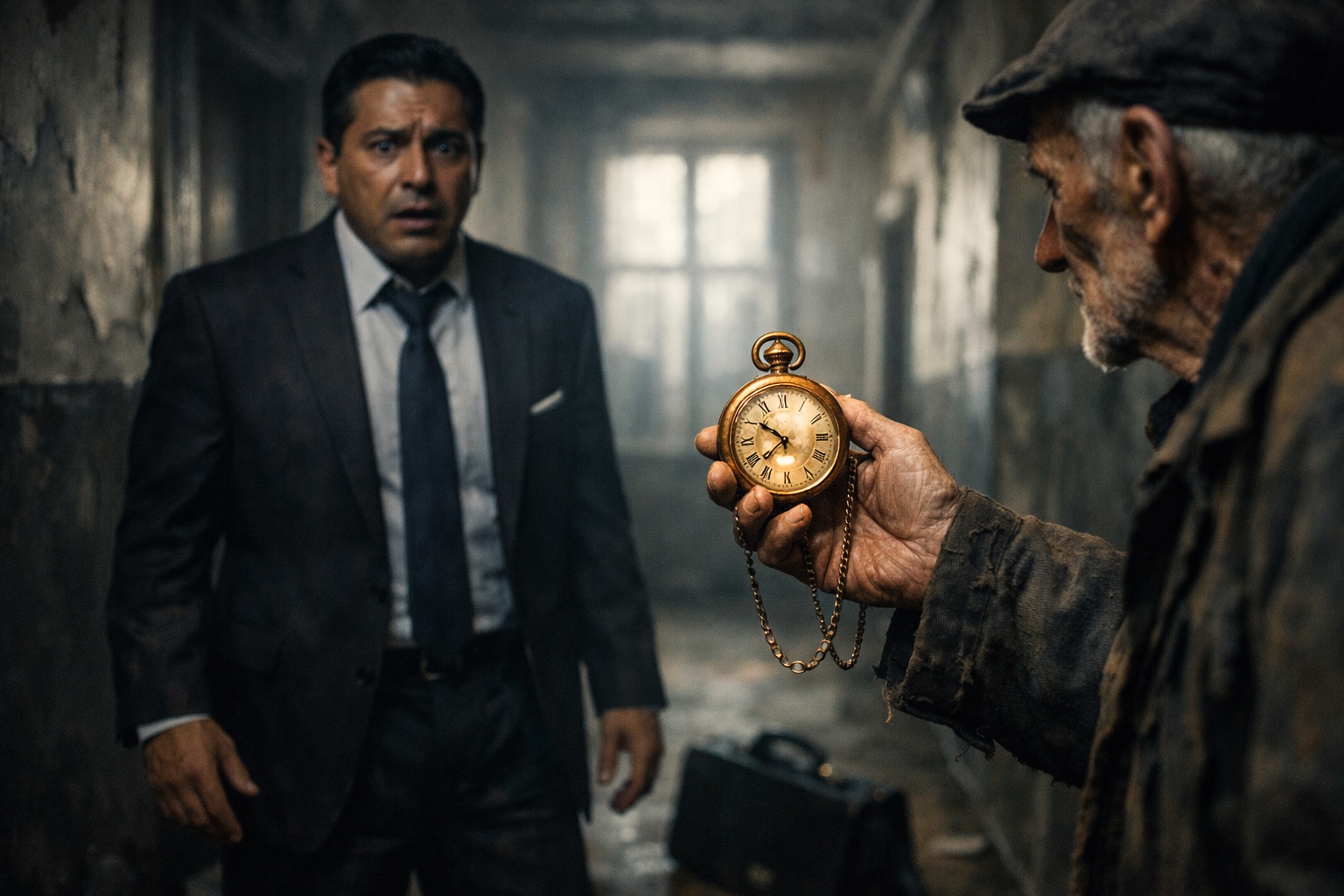 El anciano se sentó lentamente en el escalón más cercano, jadeando. Tardó casi un minuto en recuperar el aliento. Sus manos seguían sosteniendo el reloj como si fuera lo único que lo mantenía anclado a la realidad.