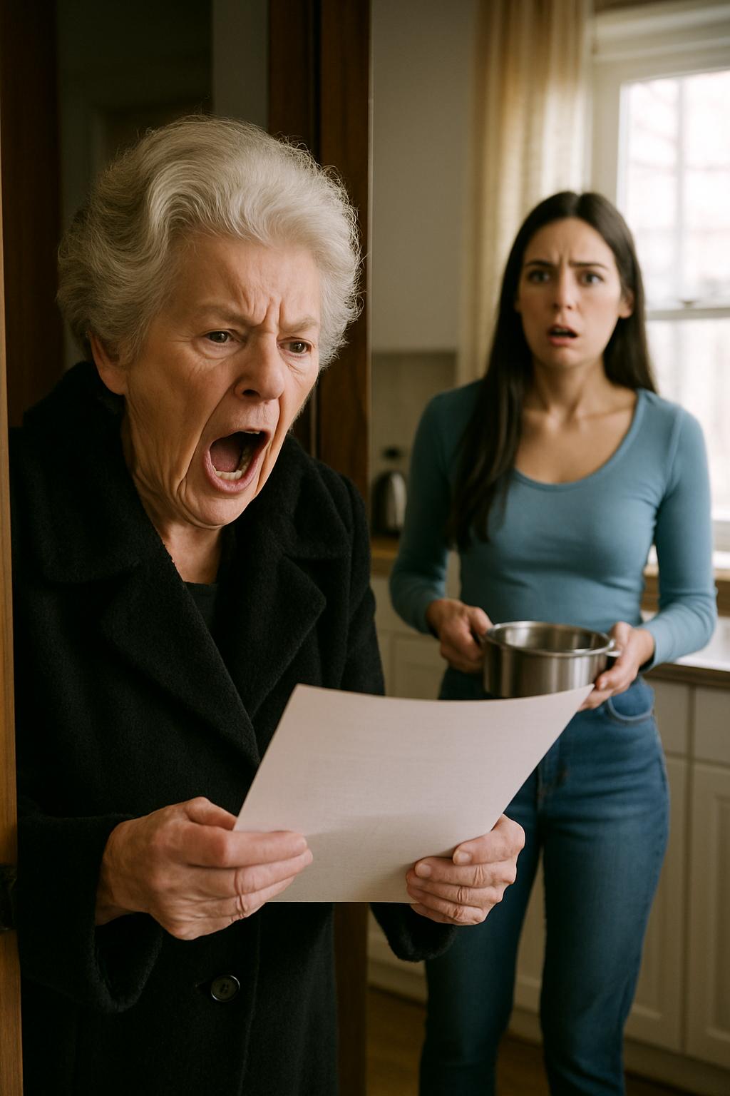 Valeria Peña se quedó paralizada junto a la estufa, sosteniendo una cacerola, incapaz de procesar la escena. En medio de la cocina estaba Teresa, envuelta en su costoso abrigo de piel, con el papel arrugado entre los dedos y el rostro encendido por la indignación.