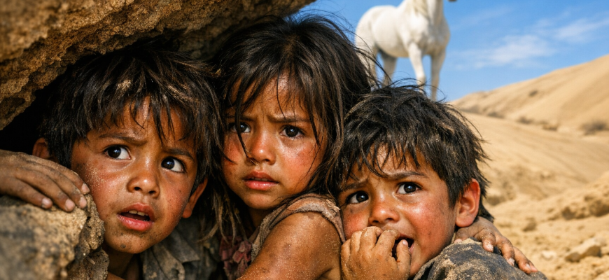 El calor no daba tregua. La piel de los pequeños ardía bajo el sol implacable y la arena, encendida como brasa, les lastimaba las plantas de los pies cada vez que intentaban moverse. El agua que quedaba en la cantimplora desapareció casi de inmediato, apenas unas gotas insuficientes para calmar la sed que les raspaba la garganta. El mayor, que no debía pasar de los diez años, trataba de animar a su hermanito con palabras que se deshacían en el aire seco; su voz era tan débil que el desierto parecía tragársela sin esfuerzo. Estaban a merced del abandono, condenados por quien tenía la obligación de cuidarlos.